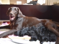 Unseren Dausendsassas gehts gut, alle nehmen gut zu und sind sehr quirlig! Rolle macht einen hervorragenden Job, sie ist eine vorbildliche Mama. Im Moment liegt Rolle noch ununterbrochen in der Wurfkiste, sie verlässt sie nur um sich zu lösen. Hier sind ein paar neue Fotos von den ersten Tagen, denn Bilder sag4n mehr als Worte .