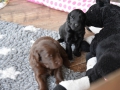 10.4.2019: Die 5. Woche hat angefangen. Dank des guten Wetters können die kleinen Zwerge nun schon mehrmals am Tag kurz nach draußen, da es ja doch noch sehr kalt ist. Sie sind nun das 2. mal entwurmt und die Krallen werden regelmäßig geschnitten. Der erste Besuch war da, so lernen die Zwerge große Menschen, kleine Menschen, Kinder etc. kennen. Sie werden mit lauten Umweltgeräuschen vertraut gemacht, lernen Autos kennen, wenn zum Beispiel das gelbe Postauto direkt an der Terrasse hält wo die Welpen gerade spielen.