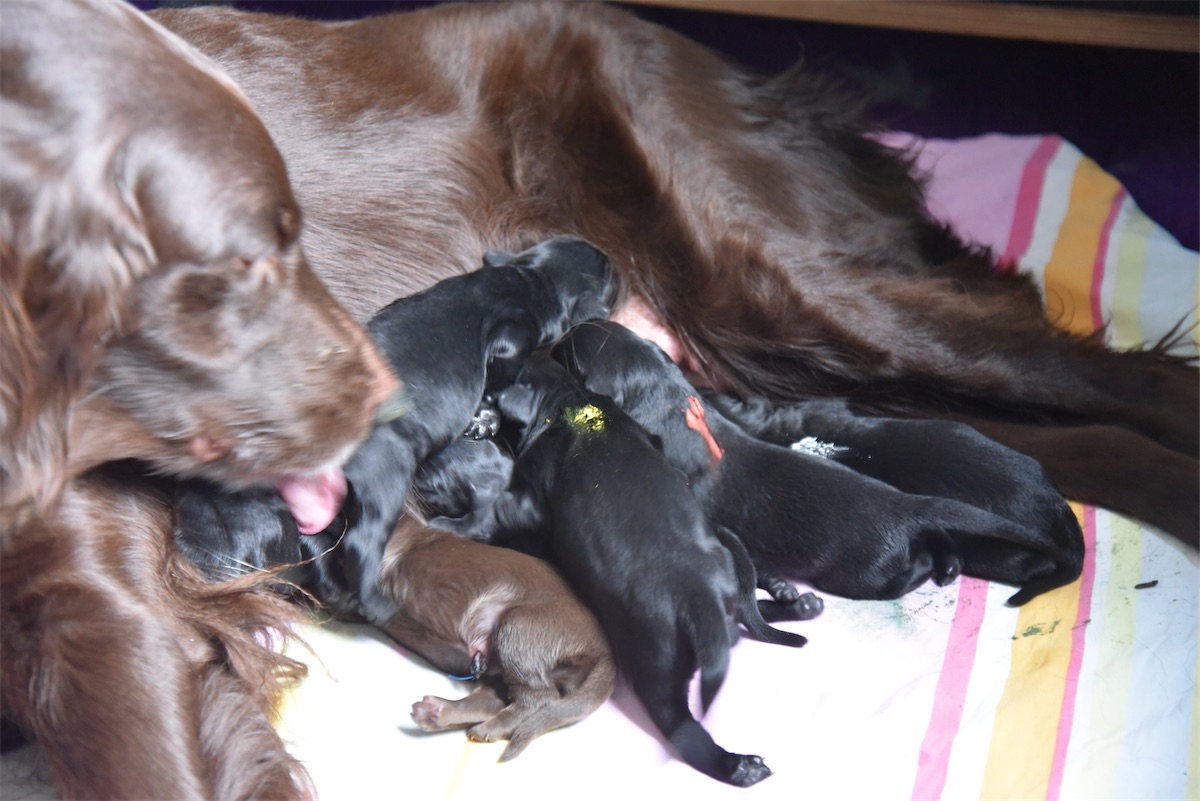 Lolle brachte souverän die 7 Welpen zur Welt! Lolle ist eine bezaubernde und erfahrene Mama! Wir sind überglücklich, dass alles so gut gelaufen ist.